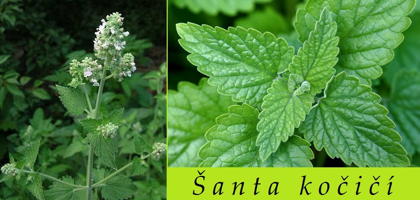 Šanta kočičí (latinsky nepeta cataria) léčí nervové potíže, zažívací problémy, tlumí křeče, snižuje krevní tlak. Šanta kočičí je statná vzpřímená trvalka vysoká až 80 cm. Listy má řapíkaté, vstřícné, trojúhelníkovité, na okrajích hrubě pilovité. Na líci lysé, na rubu šedavé a plstnaté. Květy jsou bílé, někdy s narůžovělým odstínem. Vyrůstají ve stopkatých, vidlanovitých svazcích. Plodem je hladká tvrdka.
