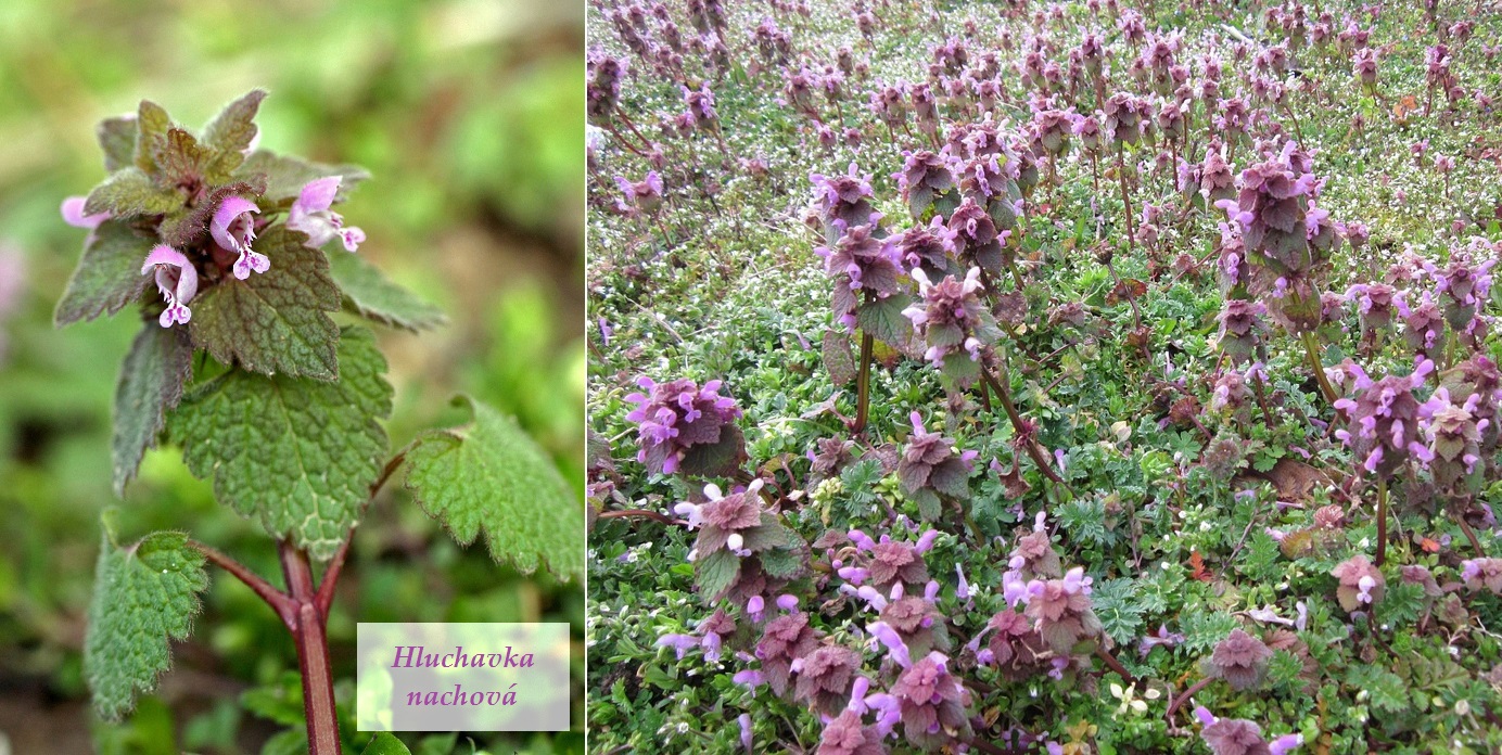 Hluchavka purpurová (latinsky Lamium purpureum) patří do čeledi hluchavkovité (Lamiaceae). Léčí hlavně záněty, tlumí křeče, menstruční problémy a využívá se na sedací koupele u gynekologických zánětů. Je to jednoletá rostlina, vysoká od 30 do 50 cm. Lodyhu má částečně plazivou, čtyřhrannou, ochmýřenou. Listy podobné jako kopřiva, trojboce vejčité, pilovité. Bílé, pyskaté květy, které kvetou zrhuba od dubna do září (hodně záleží na nadmořské výšce). Nemá žádné žahavé chlupy, na omak je příjemně jemná.