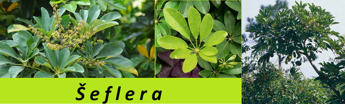 Šeflera - rod zahrnuje asi 200 druhů, které tvoří keře nebo malé stromy s dlanitě složenými listy a květy uspořádanými v hroznech. Rostou všude v tropech. Šeflera osmilistá, Schefflera octophylla (syn. S. heptaphylla, Aralia octophylla), je strom dosahující výšky 5-15 m, s listy pěti- až osmičetnými, lístky kopinatými.