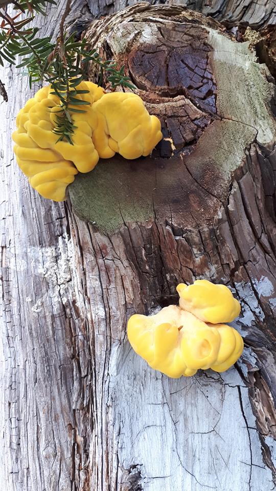 Žlutá houba na tisu vonící po sýru - jméno, název, jedlost (chorošovec sírový, sírovec žlutooranžový, Laetiporus sulphureus)