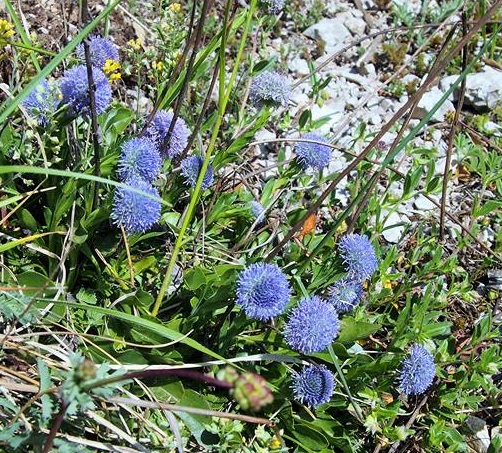 Neznámá rostlina s malým hustým světle modrým květem - identifikace podle fotografie