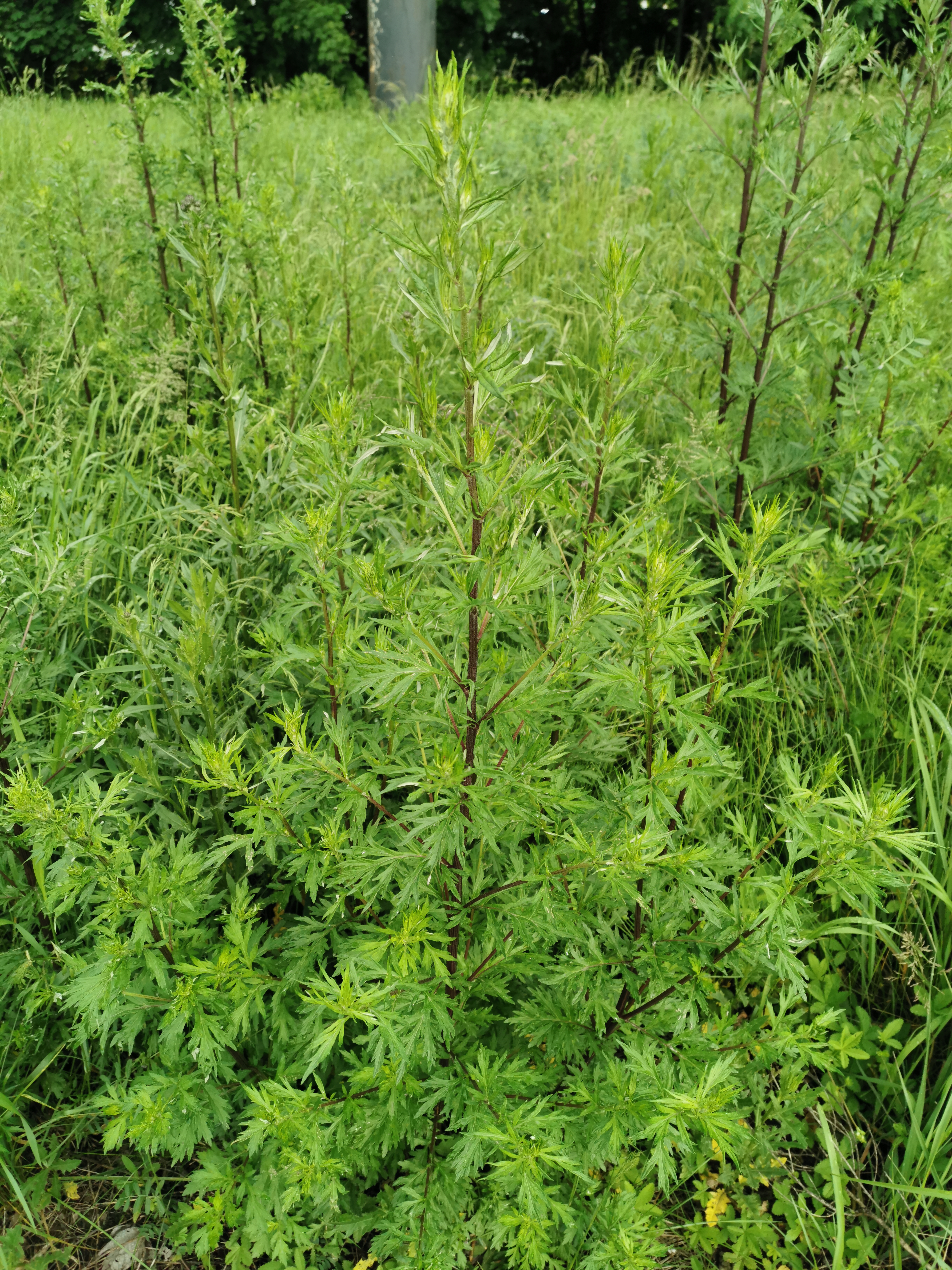Fotografie rostliny rostoucí v trávě - jde o pelyněk černobýl?
