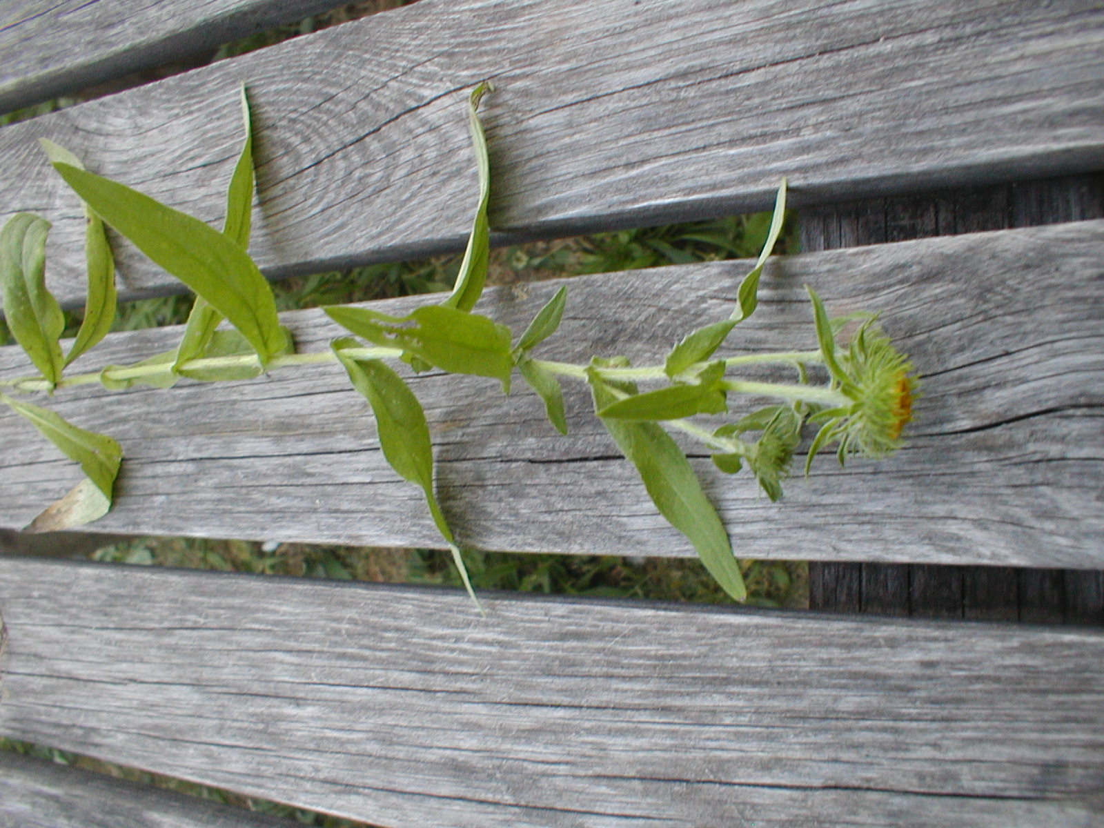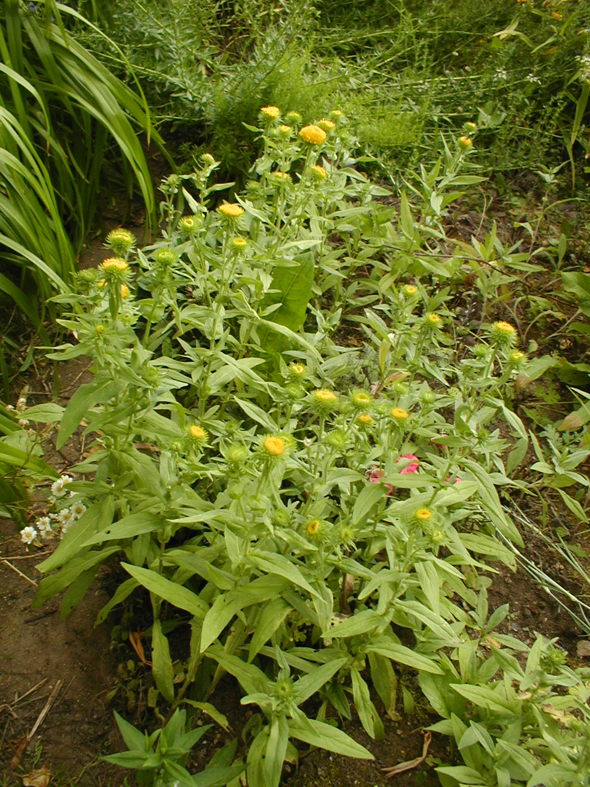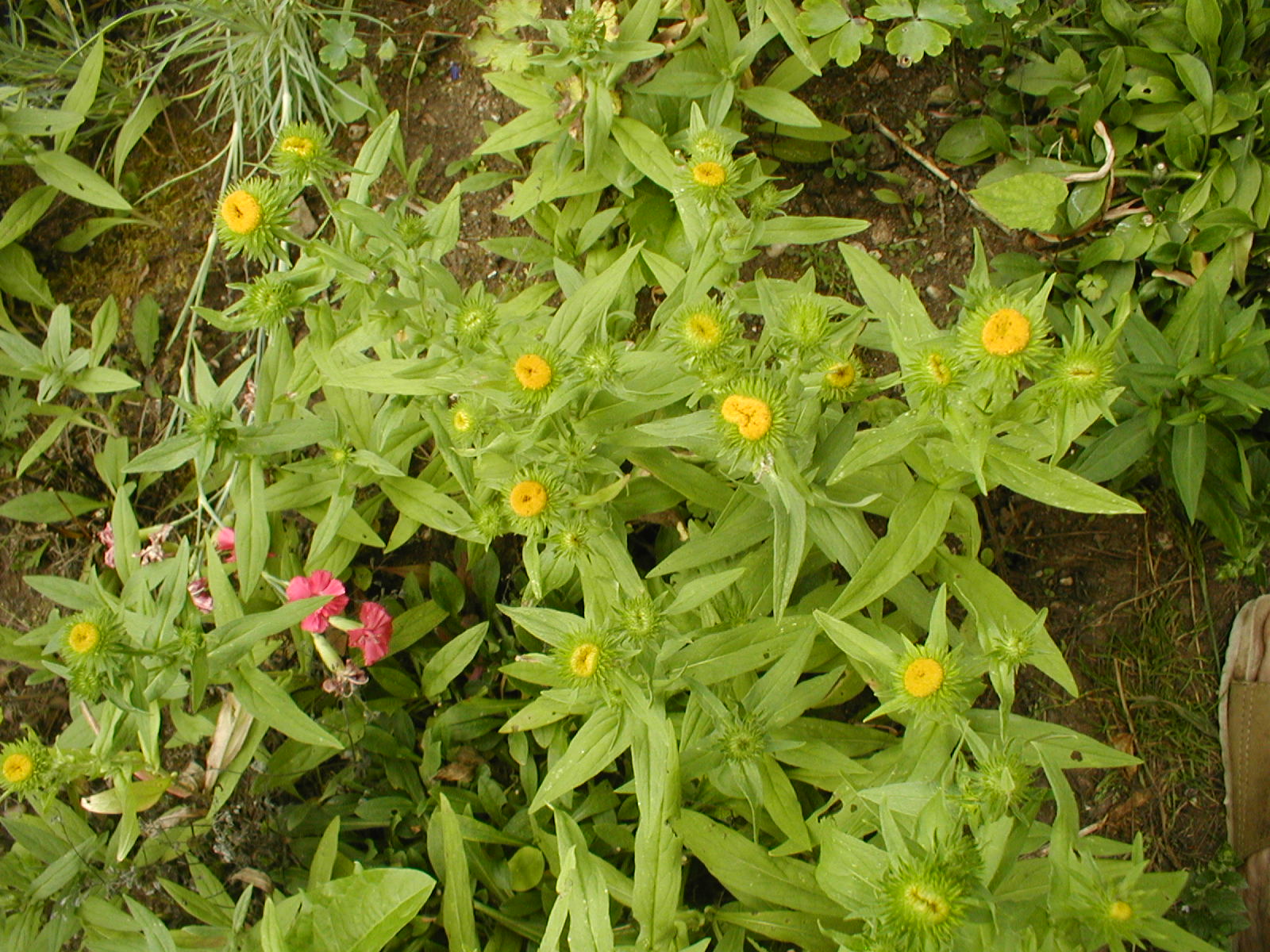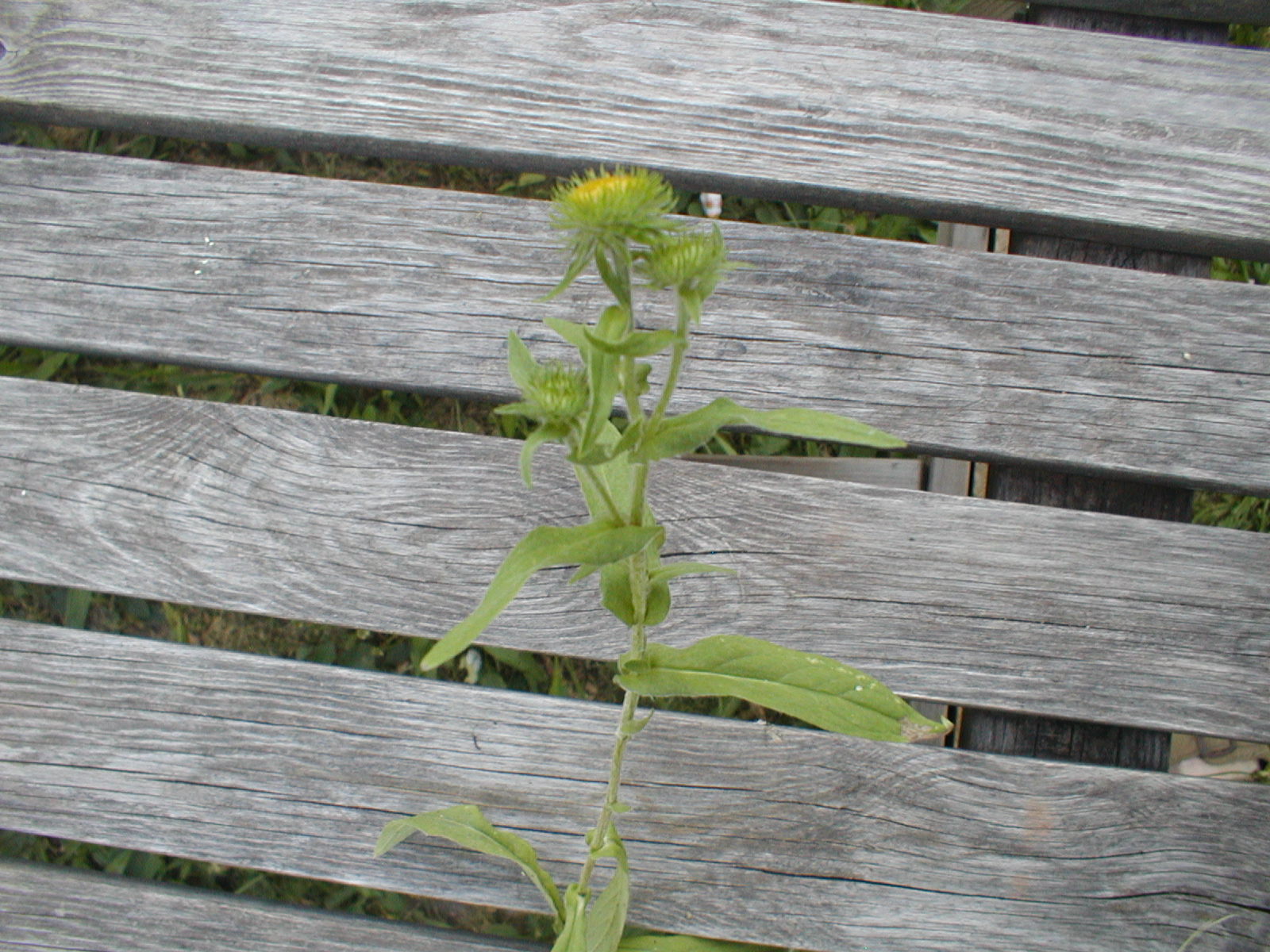 Inula - rostlina původně ze sluneční suché louky. Roste i u nás na hřbitově. 2012-2015 mi roste na zahrádce, líbí se mi tak ji nechávám růst, ale už se moc rozrůsta. Myslím že je to inula, ale nic podobného jsem nikde nenašel. Dorůstá asi do 30 cm, okvětní lístky jsou zakrnělé téměř žádné. Květenství je vždy zvrásněné - prohnutý nebo propadlý prostředek.