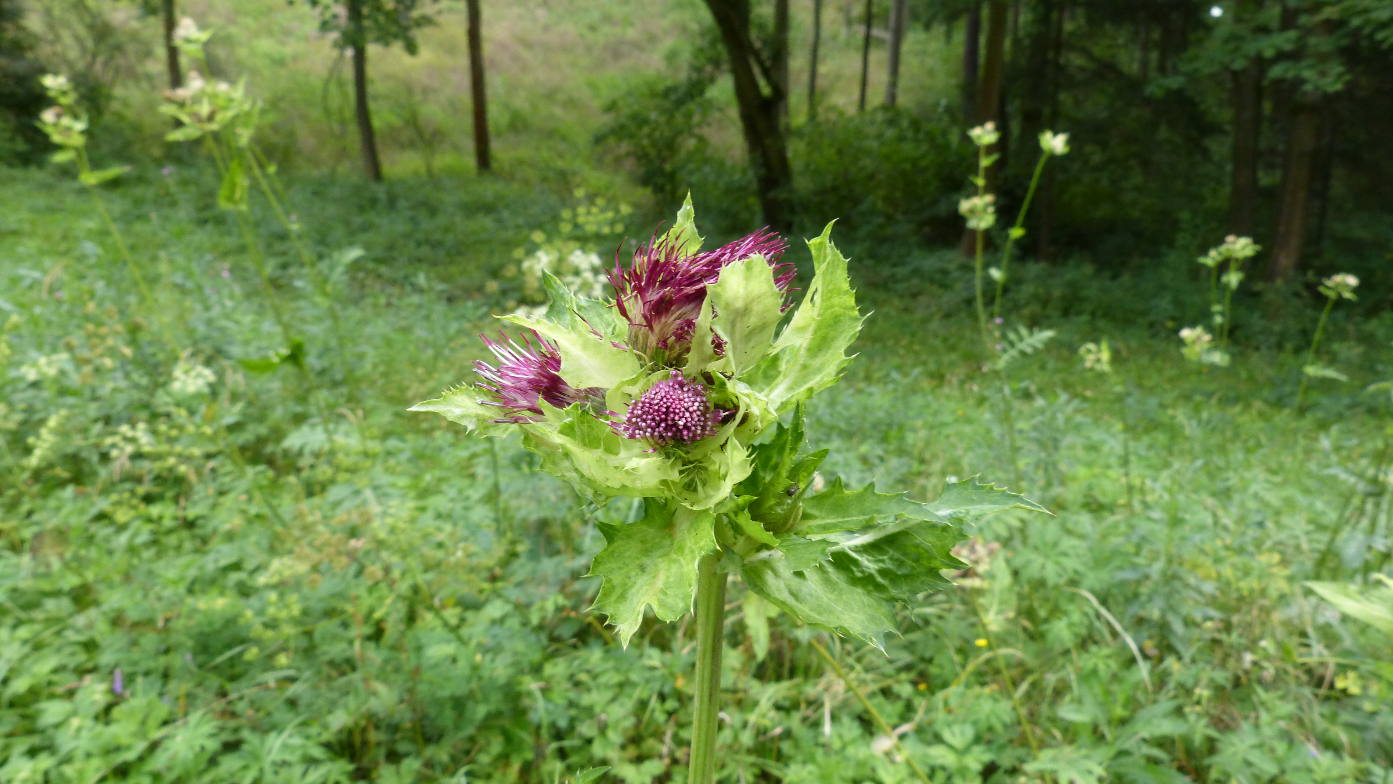 Asi metr vysoké rostliny na louce s růžovofialovými květy - identifikace, určení názvu