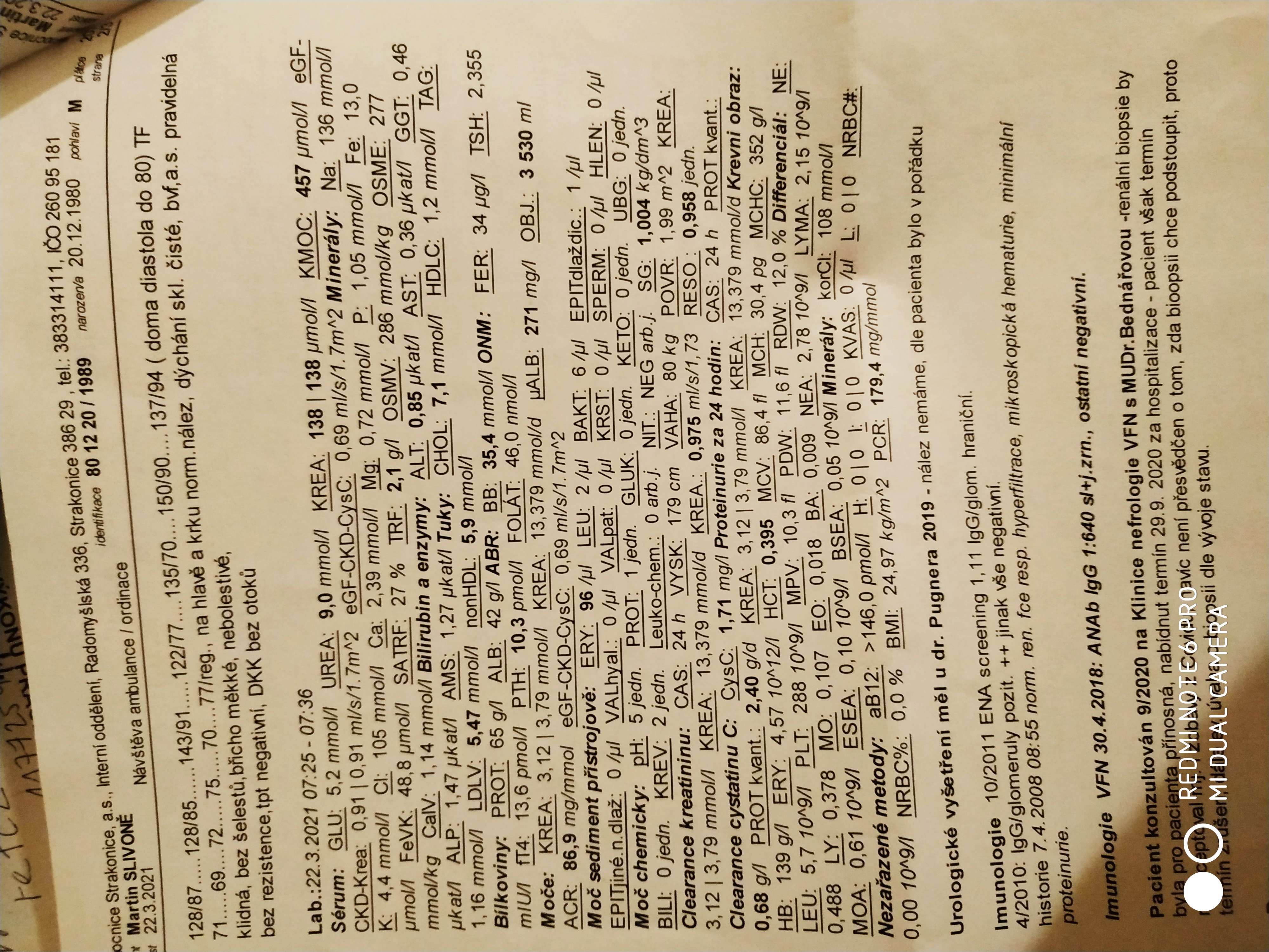 1999 mi byla zjištěna zvýšená propustnost krve z ledvin (glomerul. erytrocyturie slehkou proteinurií). V současné době se mi postupně zhoršily hodnoty bílkoviny a kreatinu a cholesterol. Je mi doporučována biopsie z které mám obavy a chtěl bych se jí vyhnout.