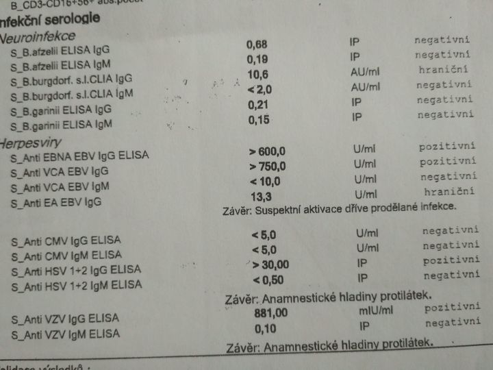 Jo abych nezapomněl, tak jsem požádal o testy na chronickou borelku a EBV z krve a tak čekám na výsledky.