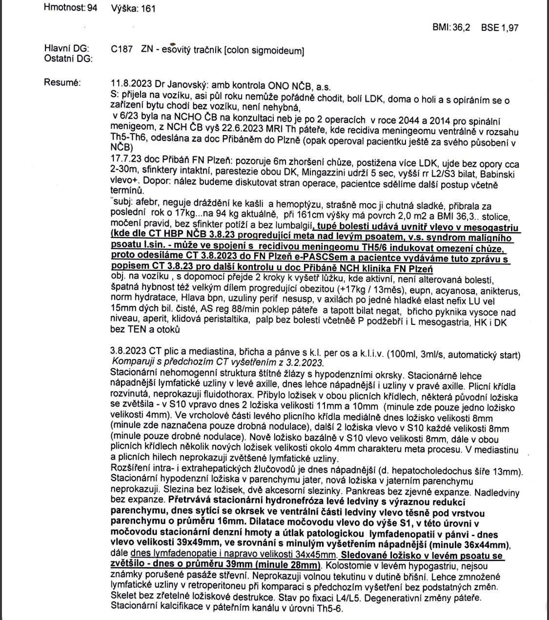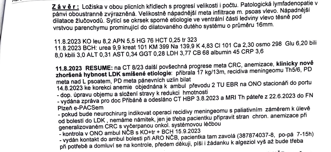 nedávno jsem sem psala dotaz ohledně matky a psal jste že není zřejmý primární nádor, proto přikládám i její zprávu z onkologie, kde se snad dozvíte víc.