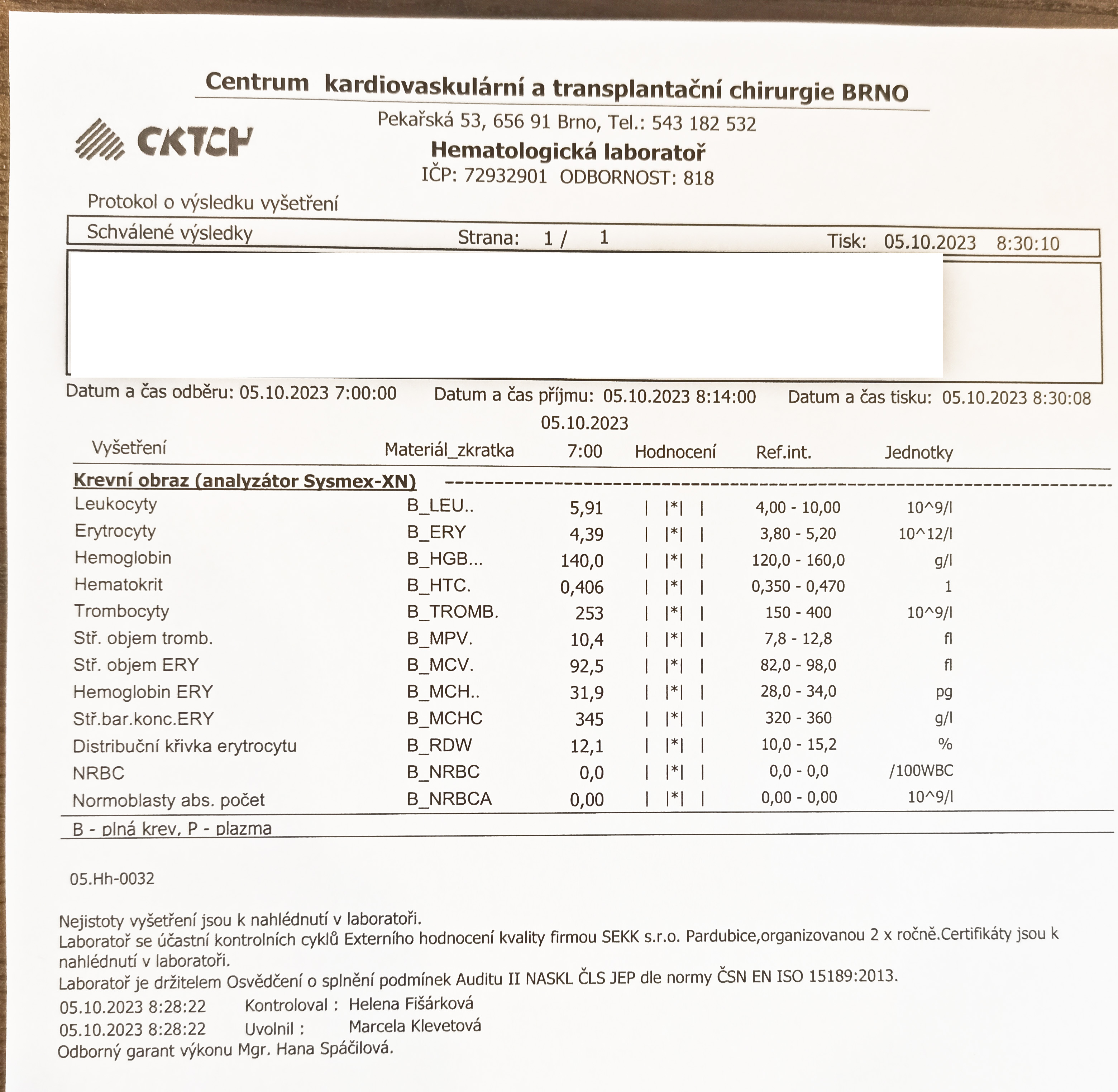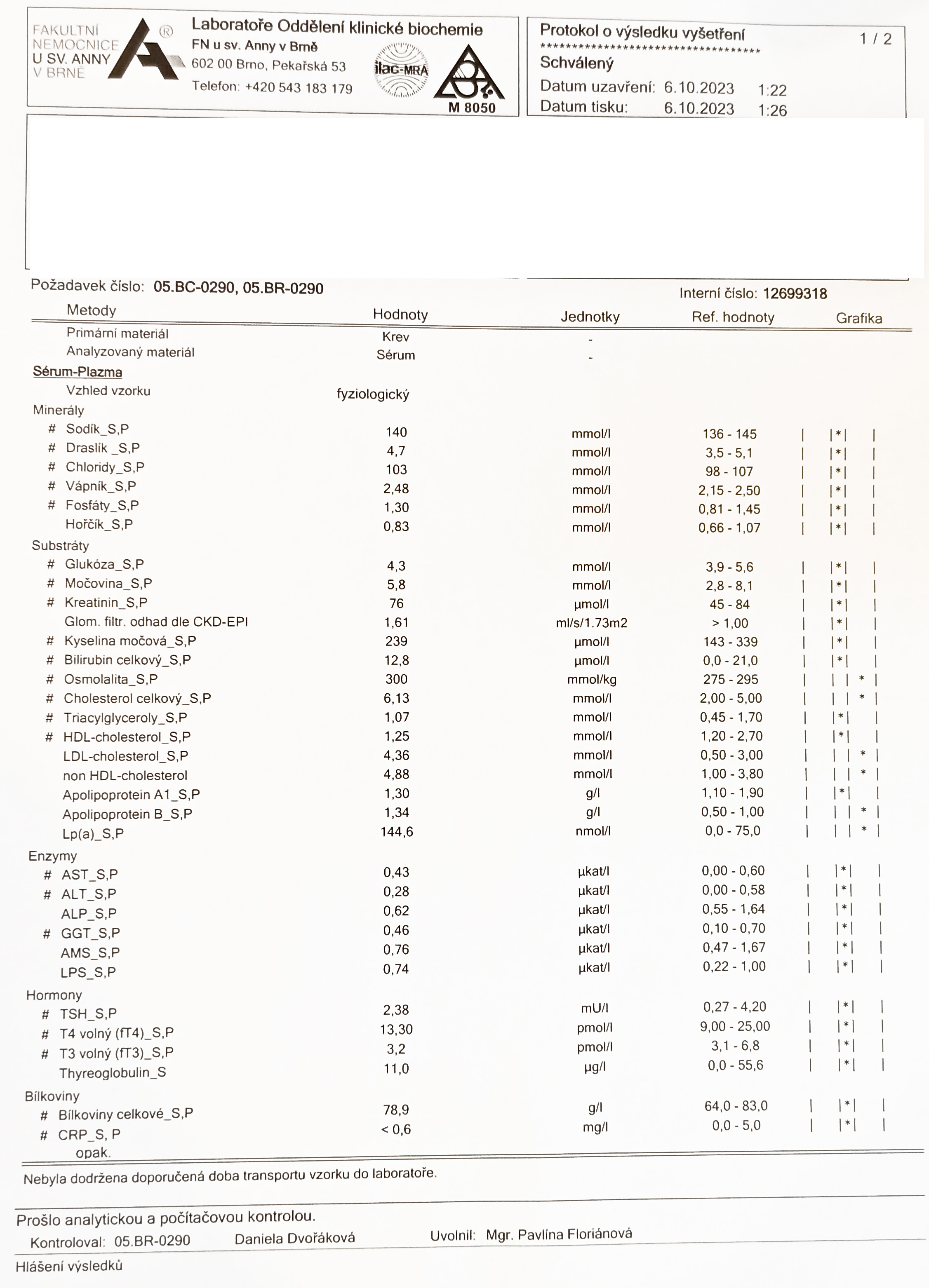 V příloze zasílám výsledky krevních testů dcery.