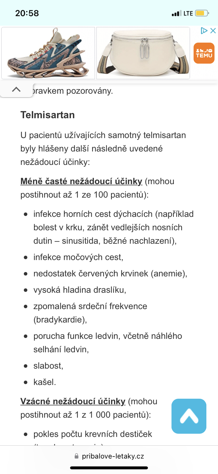 Když ji dělali vyšetření v nemocnici těsně před operací vystoupal jí tlak do závažných výšek a operaci odložili. Načež jí její paní doktorka napsala léky na tlak, aniž by zvážila, že tlak nastoupal ze strachu a řekla jí, že v jejím věku už každý musí brát nějaký lék. Pak operaci úspěšně podstoupila. Bohužel od té doby si stěžuje na únavu, nevolnost a na to, že už brzy umře. Zadýchývá se čím dál více a tak šla opět k doktorce. Ta jí udělala krevní testy a našla velice nízký obsah červených krvinek. Když babička nadhodila, jestli by to nemohlo být těmi léky, lékařka to nechtěla řešit a posílá ji na spoustu dalších vyšetrění, což oceňuji. Nicméně, jestli to bude náhodou těmi léky, tak se obávám, že se to bude jen horšit, až asi opravdu umře. Ten lék je Tezeo HTC s aktivní látkou telmisartan, která má v nežádoucích účincích postihujících až 1 ze 100 pacientů i nedostatek červených krvinek. Objednala jsem od vás melasu na podporu krve tvorby, ale jako lékaře se vás chci optat na radu, jak může kdo prověřit zda to je nebo není tím lékem? Před operací očí a následným nasazením léku dělali babičce krevní testy a vše bylo víc než v pořádku. Proto to podezření na lék.