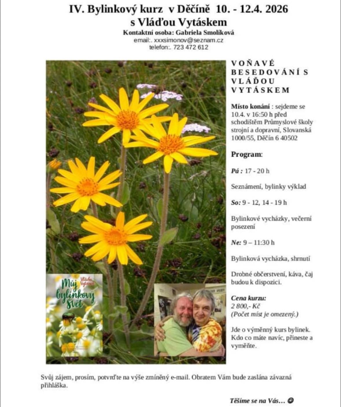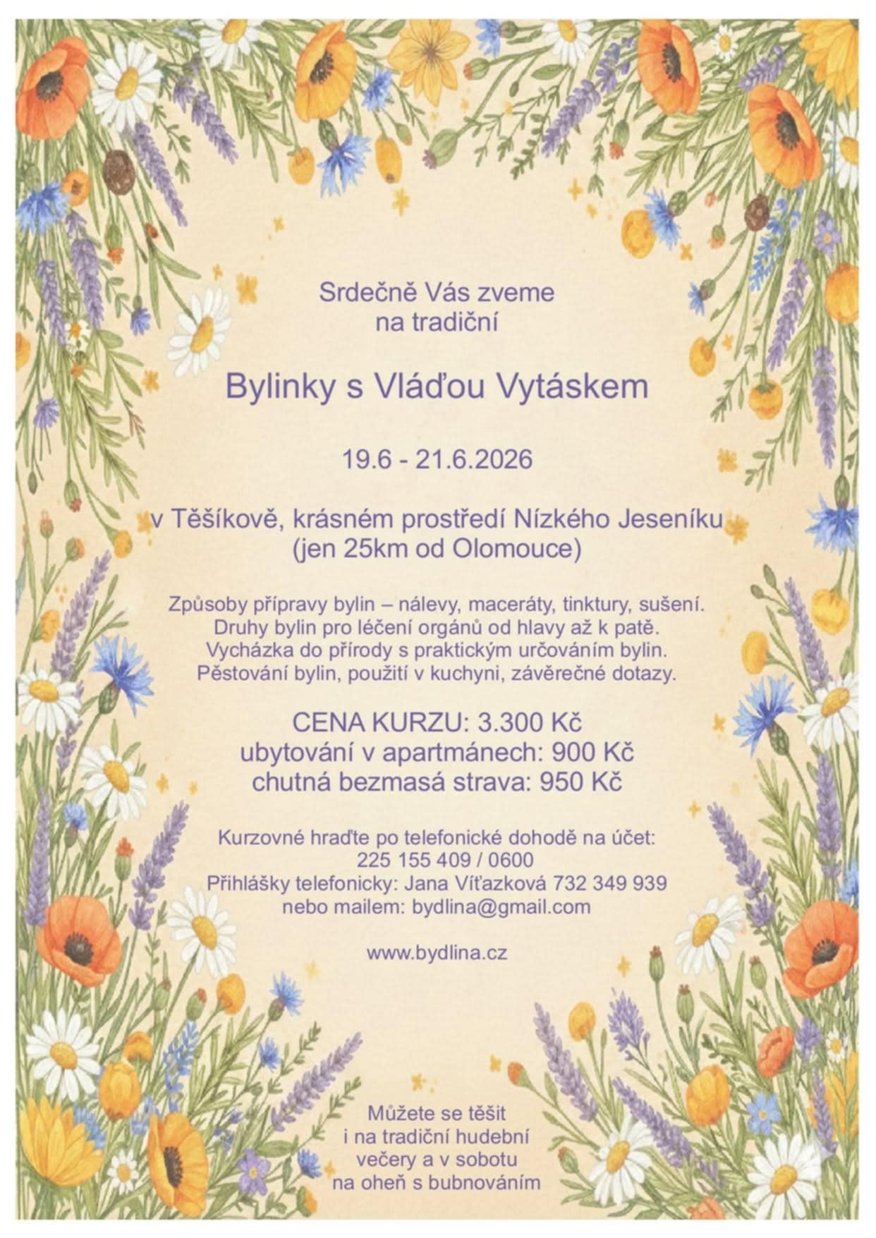 Tato stránka je určena pro propagaci bylinkových akcí (kurzy, vycházky do přírody, semináře) bylináře Vládi Vytáska z Litovle, které se uskuteční v průběhu roku 2026.