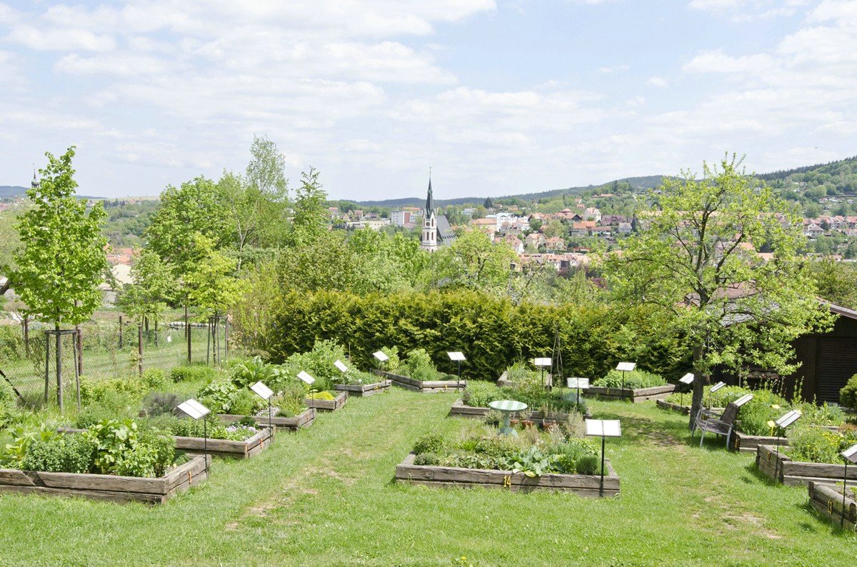Pocity ze zahrady a její popis: Zahrada je umístěna na velmi hezkém kopcovitém místě hned u města Český Krumlov. Při návštěvě se můžete kochat tedy nejen bylinkami, ale i výhledem na město samotné. Prostory zahrady jsou členěny na 2 velké části, které jsou oddělené cestičkou.