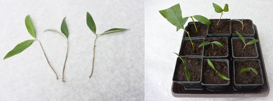 - Vybereme zdravý letorost, který na bázi již dřevnatí. U dřevin bývají vhodnější vodorovné výhony s uzlinami (místo, odkud vyrůstají listy či postranní větvičky) blíže sebe.