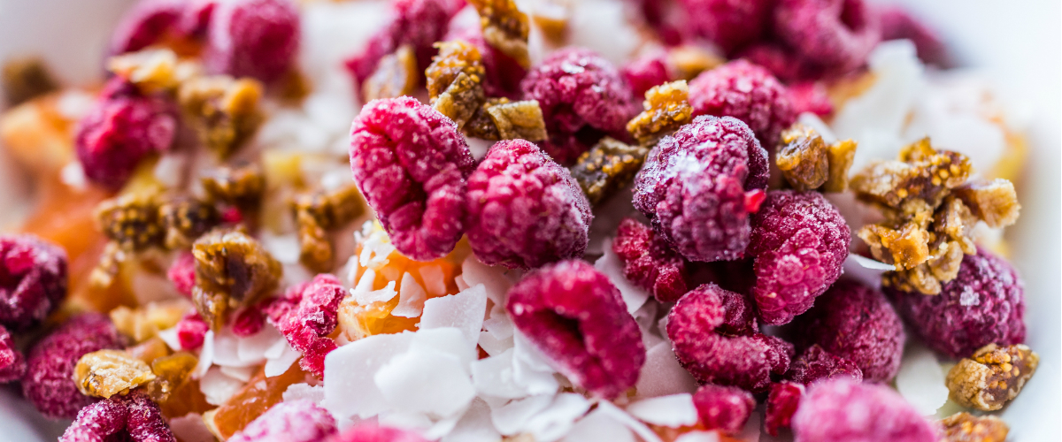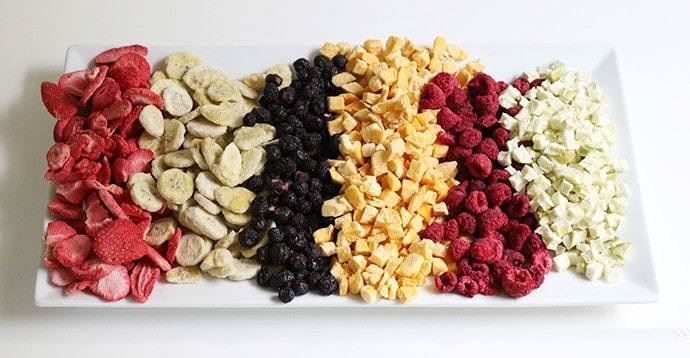 Speciální technologie vysoušení ovoce pomocí mrazu. Konzervační účinek rovněž spočívá v odstranění vody. Lyofilizace probíhá v několika fázích. Nejprve se potravina hluboce zmrazí na teplotu nižší než −20 °C. Poté se v mrazicí komoře sníží tlak a zvýší teplota, čímž dojde k sublimaci (odpaření) ledu do vzduchu. Výsledná vlhkost lyofilizovaných výrobků se pohybuje od 1 až do 4 %. Výhodou lyofilizace je téměř dokonalé zachování tvaru sušeného ovoce a také při ní nedochází k nežádoucím změnám barvy. Lyofilizace se hojně používá i při výrobě instantní kávy.