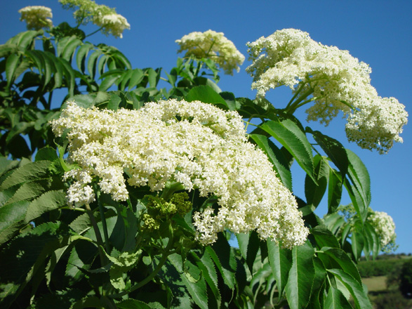 Med z květů černého bezu, bezinek - recept: 30 květů, 1 citron pokrájený na kolečka povaříme v 0,75 litru vody 10 minut, poté necháme do druhého dne. Druhý den scedíme, přidáme 1,5 kg cukru a vaříme do zhoustnutí. Pro zvýraznění chuti můžeme přidat skořici.