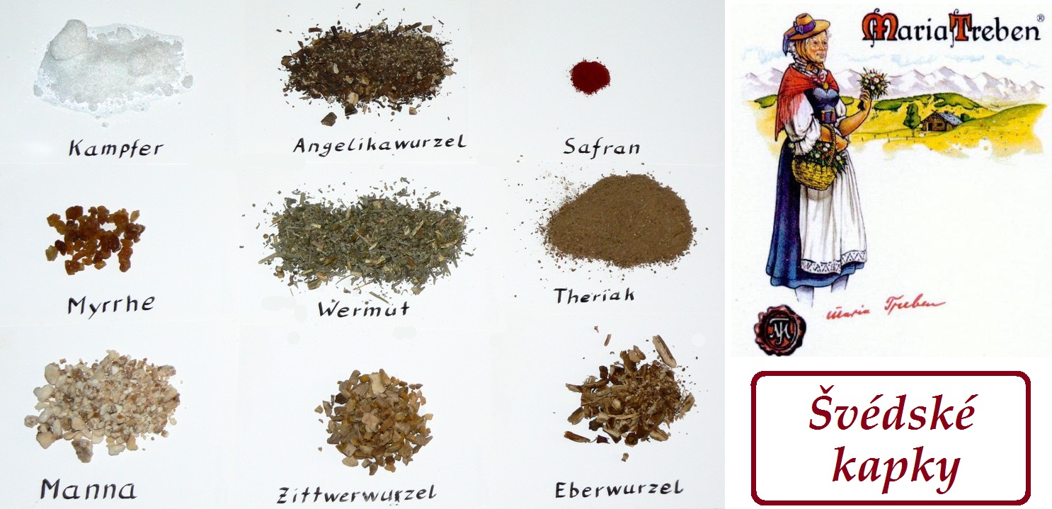 BYLINKY NA ŠVÉDSKÉ BYLINY, ŠVÉDSKÉ KAPKY - receptura od Maria Treben - složení, recept, postup, návod na přípravu