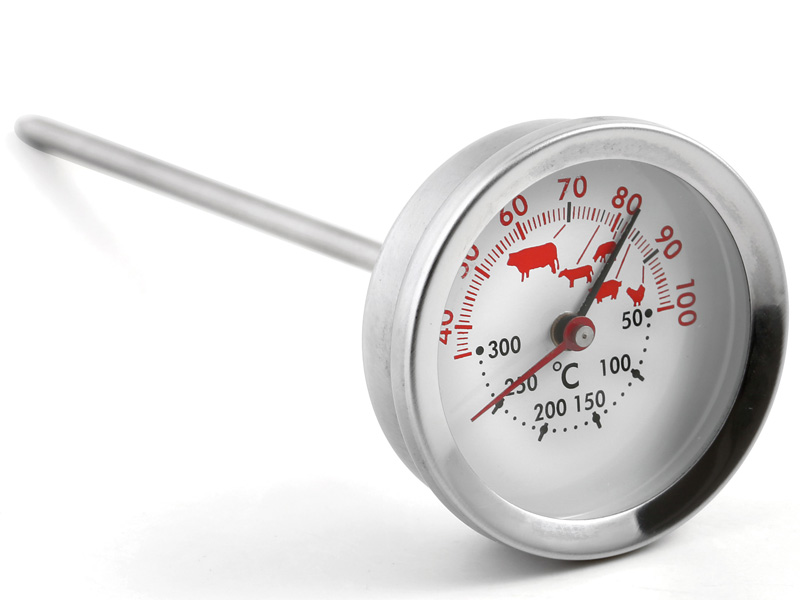 - Do nasekané hlívy s vodou dejte teploměr, kterým budete kontrolovat teplotu kaše. Měřící čast teploměru udržujte přibližně ve středu ohřívané hmoty. Pokud by se teploměr dotýkal spodku nádoby nebo okraje, mohl by ukazovat zkreslenou teplotu.